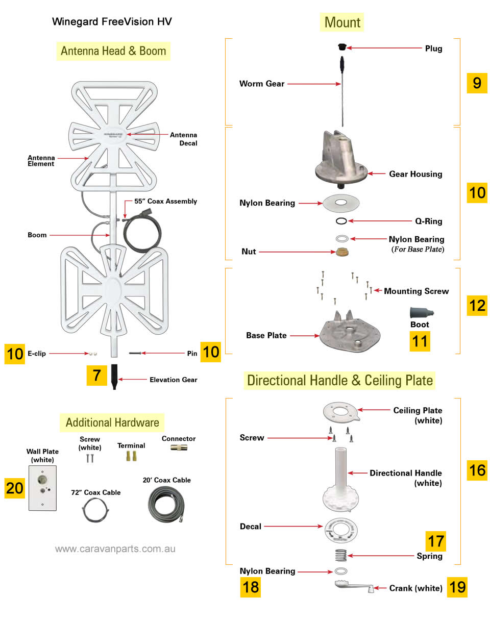 Spare Parts Diagram: Winegard FreeVision Sensar HV